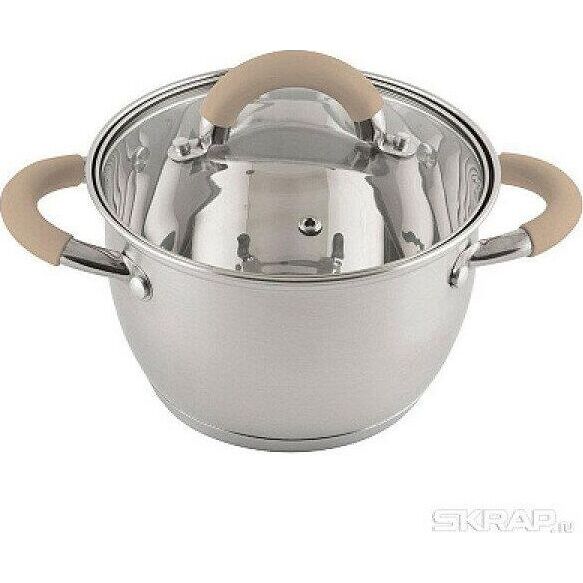 Кастрюля из нерж стали с крышкой, матовая,1,8 л, серия Fortuna, V-shape, ручки с сил-ном, тм Mallony Объем: 1,8 литра. Материалы: нерж сталь 201 (толщина стенок 0,5 мм), силикон, алюминий, 430 сталь, жаропрочное стекло. Размер: 16*10,5 см, капсулированное 3-слойное дно (нерж сталь 201+1,5 мм алюминий+ база 430 сталь), подходит для всех типов плит, матовая внутри и снаружи, отметки литража, крышка из жаропрочного стекла с отверстием для выпуска пара, С-тип, ручки полые из нерж стали 201 с силиконовыми вставками, упаковка — пакет и цветная коробка. Не рекомендуется мыть в посудомоечной машине. Мыть теплой водой с мягким моющим средством.