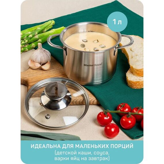 Кастрюля MASTER HOUSE Piccolo-1,0 со стеклянной крышкой 75319