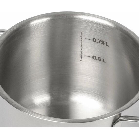 Кастрюля со стеклянной крышкой 1.0л. Нержавеющая сталь 304 (18/10). Размер Д12хВ9см. • Объем - 1 л, диаметр крышки - 12 см, высота - 90 мм • Толщина стенок 0,5 мм • Капсулированное дно со слоем алюминия 2 мм Материал:Нержавеющая сталь, термостойкое стекло, алюминий. Кастрюля со стеклянной крышкой 1 л. Идеальна для приготовления маленьких порций блюд (детская каша, соус). Капсулированное дно с алюминиевой вставкой Крышка из термостойкого стекла с отверстием для пара и ободком из нержавеющей стали Эргономичные стальные ручки. Отметки литража на внутренней поверхности. Подходит для всех видов плит, включая индукционную. Можно мыть в посудомоечной машине.
