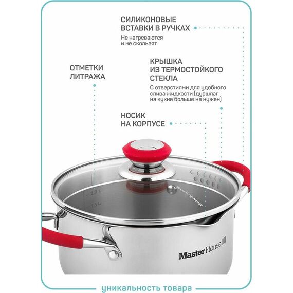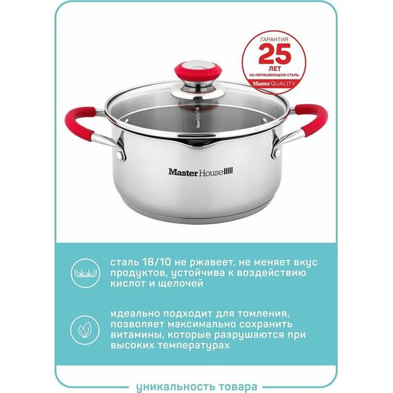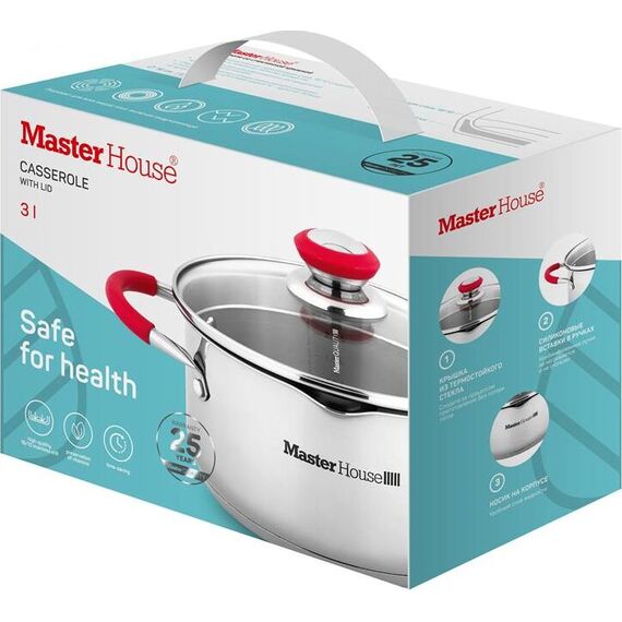 Кастрюля MASTER HOUSE Rosse-3,0 со стеклянной крышкой 60481