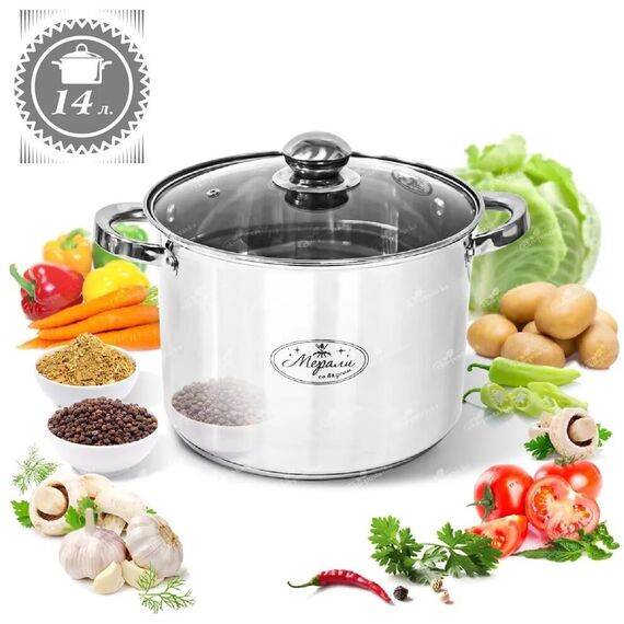 Кастрюля МЕРАЛИ МБ-140 Белиссимо с крышкой 14,0л