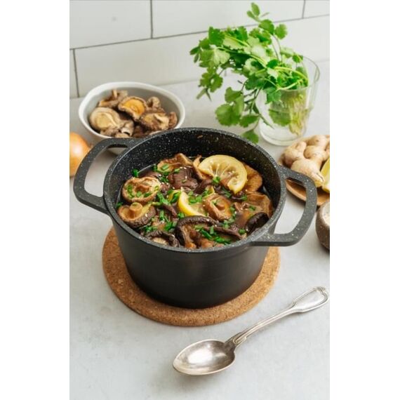 Кастрюля имеет современный прямой корпус из литого алюминия с уникальным геометрическим рисунком «волна». Качественное антипригарное покрытие с эффектом натурального камня «Черный гранит» позволяет избежать пригорания продуктов даже без использования масла. Покрытие на водно-кремниевой основе не содержит PFOA (перфтороктановую кислоту), безопасно для контакта с пищевыми продуктами, а также в производстве и для окружающей среды. Кастрюля комплектуется крышкой из жаростойкого стекла с ободом из высококачественной нержавеющей стали. Изделие подходит для всех типов плит, кроме индукционных. Тип покрытия Антипригарное Диаметр изделия 26 см Диаметр дна 20.9 см Особенности Можно использовать в посудомоечной машине, Индивидуальная маркировка, Можно использовать в духовке без крышки Толщина дна 4 мм Толщина бортов 3.4 мм Форма Круглая Материал Литой алюминий Тип посуды Кастрюля Плита Газовая, Электрическая, Стеклокерамическая Высота бортов 14.2 см Серия / Коллекция Литая Вес 2.13 кг Объем 6 л