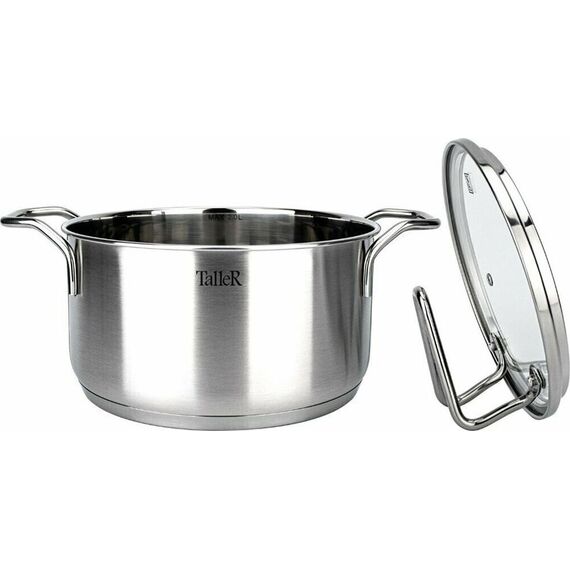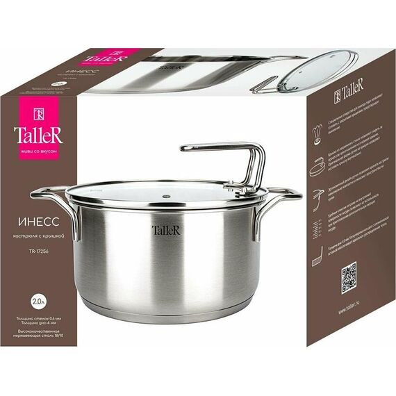 Кастрюля "Инесс" Объем 3 л. Материал: нержавеющая сталь 18/10 Крышка из закаленного стекла со специальным отверстием для выхода пара Удобные отметки литража на внутренней поверхности посуды Капсулированное дно с алюминиевой вставкой обеспечивает идеальное