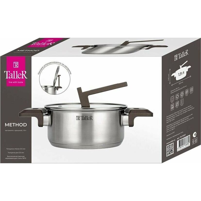 Кастрюля 1,9 л с крышкой, диаметр 18 см, высота без крышки 8,5 см, внешний диаметр дна 16,5 см ,ширина с ручками 31,8 см. Толщина стенок 0.5 мм, толщина дна 3.5 мм Материал: нержавеющая сталь Подходит для всех типов плит, в т.ч. индукционной Можно мыть