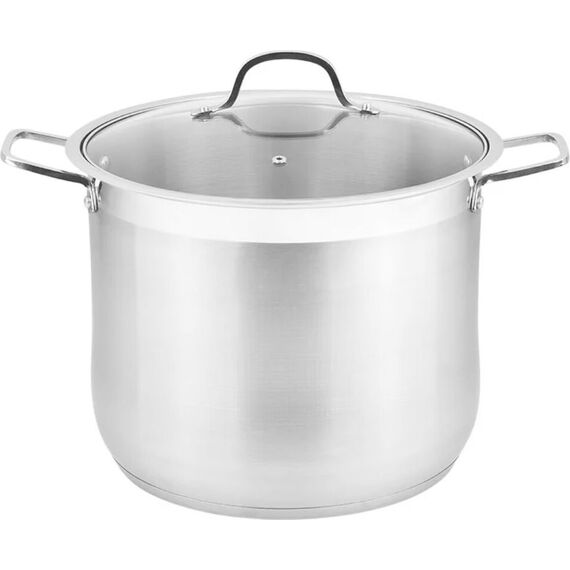 Объем: 10 л. Диаметр: 24 см. Высота: 22 см. Толщина стали: 0,6 мм. Кастрюля из высококачественной нержавеющей стали. Стеклянная крышка с отверстием для отвода пара. Термосберегающее дно: трехслойное капсулированное дно с повышенной термоотдачей. Внутренняя мерная шкала. Стальные клепаные ручки. Специальная форма, исключающая скопление остатков пищи и жира. Для приготовления пищи достаточно небольшого количества воды и масла. Минимальные потери минеральных веществ, витаминов и вкусовых качеств. Может быть использована на всех типах кухонных плит, включая индукционные. Подходит для мытья в посудомоечной машине.