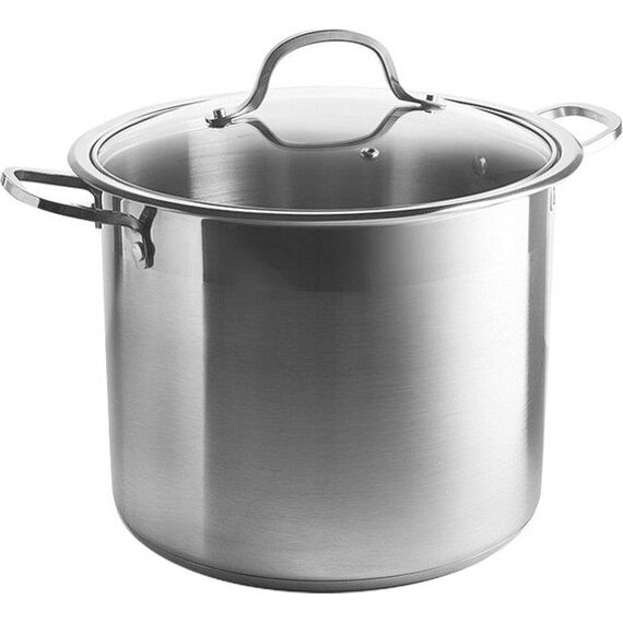 Объем: 15 л. Диаметр: 28 см. Высота: 23 см. Толщина стали: 0,6 мм. Кастрюля из высококачественной нержавеющей стали. Стеклянная крышка с отверстием для отвода пара. Термосберегающее дно: трехслойное капсулированное дно с повышенной термоотдачей. Внутренняя мерная шкала. Стальные клепаные ручки. Специальная форма, исключающая скопление остатков пищи и жира. Для приготовления пищи достаточно небольшого количества воды и масла. Минимальные потери минеральных веществ, витаминов и вкусовых качеств. Может быть использована на всех типах кухонных плит, включая индукционные. Подходит для мытья в посудомоечной машине.