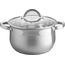 Объем 5 л. Диаметр 22 см. Высота 13 см. Толщина стали 0,5 мм. Кастрюля из высококачественной нержавеющей стали. Стеклянная крышка с отверстием для отвода пара. Термосберегающее дно: пятислойное капсульное индукционное дно с повышенной термоотдачей. Специальная форма, исключающая скопление остатков пищи и жира. Быстрый нагрев пищи, длительное удержание тепла.