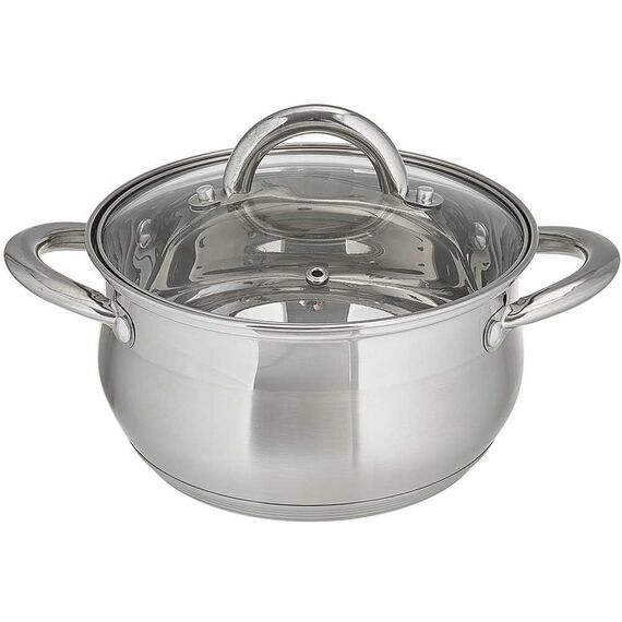 Кастрюля 5 л, 22 см, из нержавеющей стали со стеклянной крышкой WEBBER BE-354/2 Параметры Объем 5 л Диаметр 22 см Высота 13 см Толщина стали 0,5 мм Описание Кастрюля из высококачественной нержавеющей стали Серия: Aurora Стеклянная крышка с отверстием для отвода пара Термосберегающее пятислойное дно с повышенной термоотдачей Специальная форма, исключающая скопление остатков пищи и жира Быстрый нагрев пищи, длительное удержание тепла Для приготовления пищи достаточно небольшого количества воды и масла Минимальные потери минеральных веществ, витаминов и вкусовых качеств Может быть использована на всех типах кухонных плит, включая индукционные Подходит для мытья в посудомоечной машине