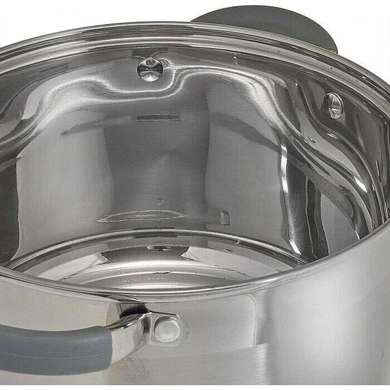 Параметры Объем 2,2 л Диаметр 16 см Глубина 10,5 см Толщина стенок 0,5 мм Описание Кастрюля из высококачественной нержавеющей стали со стеклянной крышкой Специальная форма, исключающая скопление остатков пищи и жира Термосберегающее дно: пятислойное капсульное индукционное дно с повышенной термоотдачей Быстрый нагрев пищи, длительное удержание тепла Минимальные потери минеральных веществ, витаминов и вкусовых качеств Может быть использована на всех типах кухонных плит, включая индукционные Подходит для мытья в посудомоечной машине