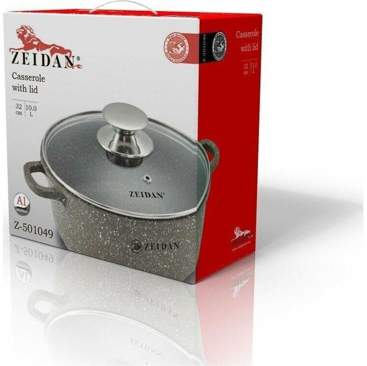 ZEIDAN Z-501049 CLASSIC Кастрюля с крышкой ZEIDAN Z-501049 10,0 л , Кастрюля со стеклянной крышкой - 10,0 л (32 см), ВНУТРЕННЕЕ И ВНЕШНЕЕ АНТИПРИГАРНОЕ ПОКРЫТИЕ "GRANITE PFLUON", литой алюминий, металлическая ручка на крышке, СИЛИКОНОВЫЕ НАКЛАДКИ. Подходит ко всем плитам, кроме индукционной