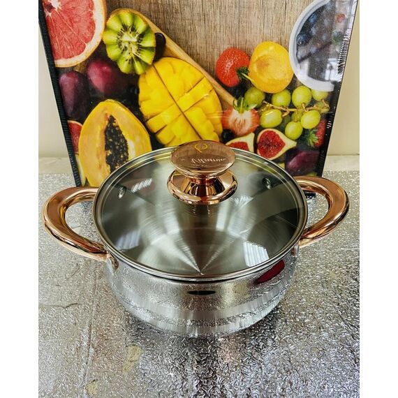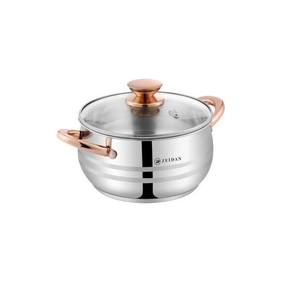 Кастрюля ZEIDAN Z-501069 2,7 л с крышкой, Кастрюля со стеклянной крышкой - 2,7 Л (Ø18 см), нержавеющая сталь, 3-x СЛОЙНОЕ КАПСУЛИРОВАННОЕ ИНДУКЦИОННОЕ ДНО, крышка - стекло, ручки на корпусе и крышке "ПОД ЗОЛОТО", комбинированная полировка снаружи, матовая полировка внутри. Подарочная упаковка.