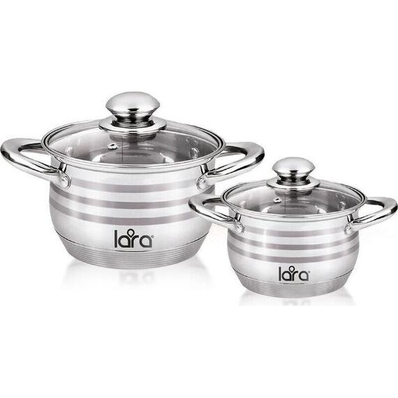 LR02-101 Набор посуды LARA Sonata, 4 пр., (кастр. 2.9л + 4.9л ) стеклян. крышки