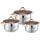 Набор посуды, 6 предм. (3 КАСТРЮЛИ С КРЫШКАМИ: 2.7 Л (d18 см ), 3.8 Л (d20 см ), 6.4 Л (d24 см ), нержавеющая сталь, 5-ти СТЕПОВОЕ КАПСУЛИРОВАННОЕ ДНО, цветная стеклянная крышка с ручкой «ПОД ЗОЛОТО», ручки на корпусе «ПОД ЗОЛОТО», внутренняя – зеркальная полировка корпуса, снаружи – комбинированная полировка корпуса.