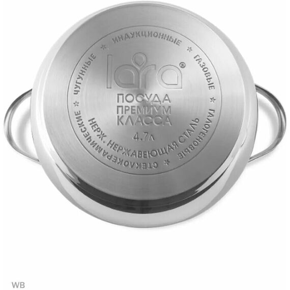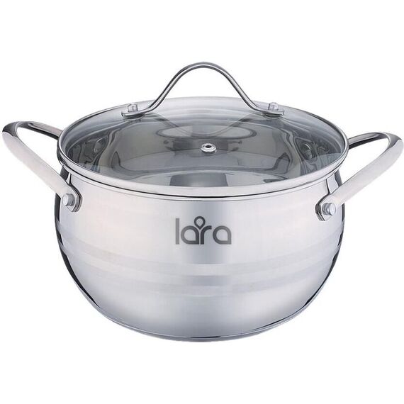 LR02-35 Кастрюля LARA (нерж) серия APPLE 24x13,5см,6.1л,стал.ручки,капсулир индукц дно,крышка стекло