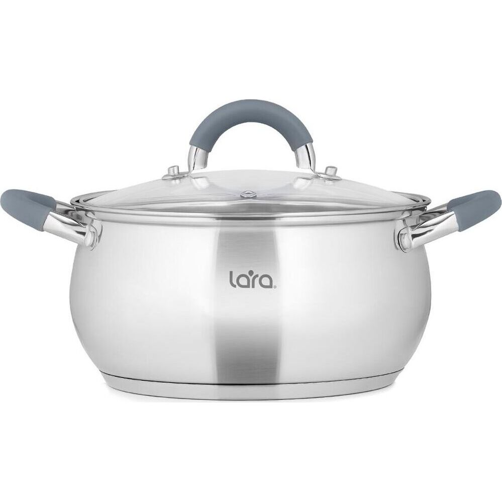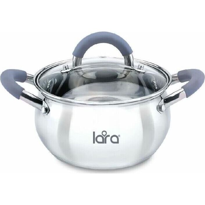 LR02-480 Кастрюля LARA (нерж) серия BELL 16x9,5см, 1.9л, капс. инд дно, силик. ручка, стекл. крышка