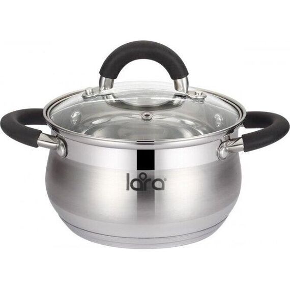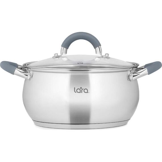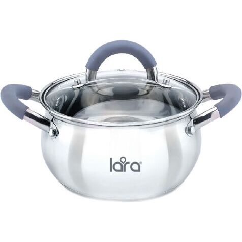 LR02-483 Кастрюля LARA (нерж) серия BELL 22x12,5см, 4,7л, капс. инд дно, силик. ручка, стекл. крышка