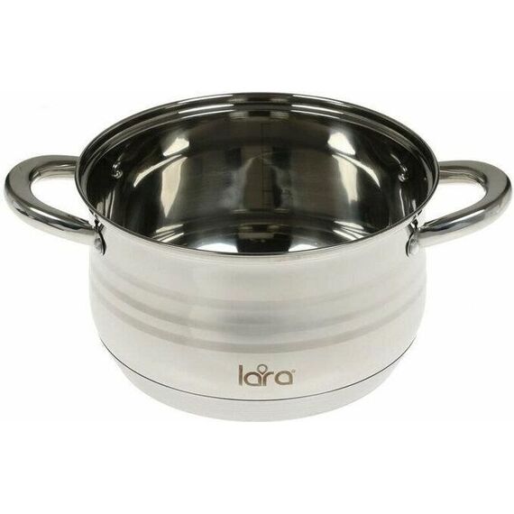LR02-582 Кастрюля LARA (нерж) серия SONATA 20x12,5см, 3.9л, 7-СТУПЕНЧАТОЕ ДНО, комбо-полировка, крыш