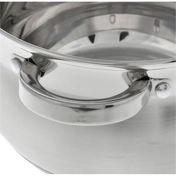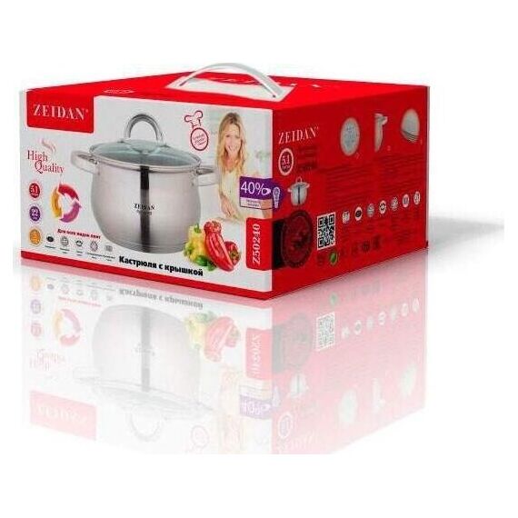 Кастрюля со стеклянной крышкой 5,1 л (д.22х13.5 см), нерж.сталь, внутренняя -зеркальная полировка, снаружи - комбинированная полировка, шкала литража, 5-ти слойное КАПСУЛИР. ДНО, ПОДАРОЧНАЯ УПАКОВКА С ПЛАСТИКОВОЙ РУЧКОЙ.