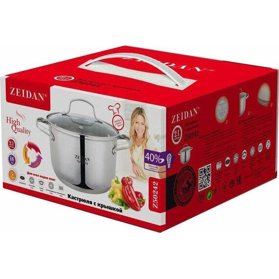 Кастрюля со стеклянной крышкой 4,0 л (д.20х12.5 см), нерж.сталь, внутри и снаружи -зеркальная полировка, шкала литража, 5-ти слойное КАПСУЛИР. ДНО, ПОДАРОЧНАЯ УПАКОВКА С ПЛАСТИКОВОЙ РУЧКОЙ.
