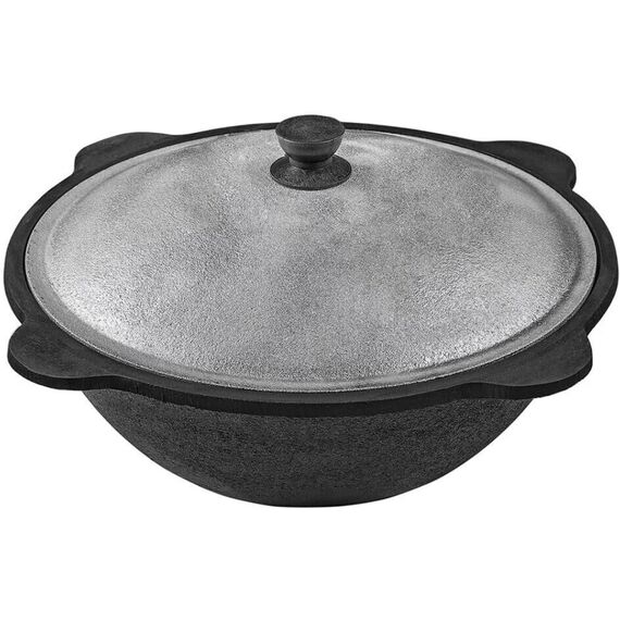 Материал: чугун Объем: 12 л Алюминиевая крышка 4 литые чугунные ручки Толщина стенок 8мм Подходит для всех типов плит, включая индукционные