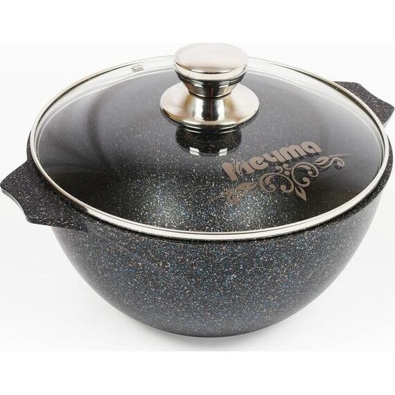 Казан для плова 5л с антипригарным покрытием и стеклянной крышкой серии "Гранит star" Подходит для всех типов плит, кроме индукционных. Можно использовать в посудомоечной машине.