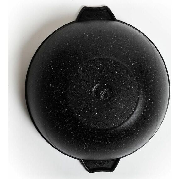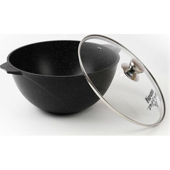 Казан для плова 8л с антипригарным покрытием и стеклянной крышкой серии "Гранит black" Подходит для всех типов плит, кроме индукционных. Можно использовать в посудомоечной машине.