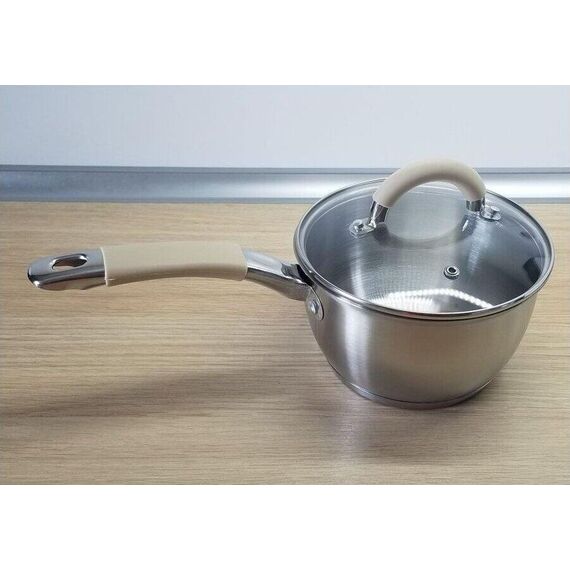 Ковш из нерж стали с крышкой, матовый, 1,65 л, серия Fortuna, V-shape, ручки с силиконом, тм Mallony Материалы: нерж сталь 201 (толщина стенок 0,5 мм), силикон, алюминий, 430 сталь, жаропрочное стекло. Объем - 1,65 л. Размер: 16*9,5 см, капсулированное 3-слойное дно (нерж сталь 201+1,5 мм алюминий+ база 430 сталь), подходит для всех типов плит, матовый внутри и снаружи, крышка из жаропрочного стекла с отверстием для выпуска пара, С-тип, отметки литража, ручки полые из нерж стали 201 с силиконовыми вставками, упаковка - пакет и цветная коробка.