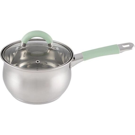 Ковш MENTOLO, 1,9 л, из нержавеющей стали с крышкой, ручки с силиконом Материал: нержавеющая сталь 201, жаропрочное стекло, силикон, алюминий, 430 сталь. Толщина стенок: 0,5 мм. Силиконовое покрытие на ручках. Ручки полые из нерж стали. Дно капсулированное: 201 сталь+1 мм алюм+430 сталь. Подходит для всех типов плит. Смешанная полировка внешнего корпуса, внутри — зеркальная полировка с отметками литража. Крышка из жаропрочного стекла с отверстием для выпуска пара. Размер 16*9,5 см. Объем 1,9 л. Упаковка: цветной ремень.