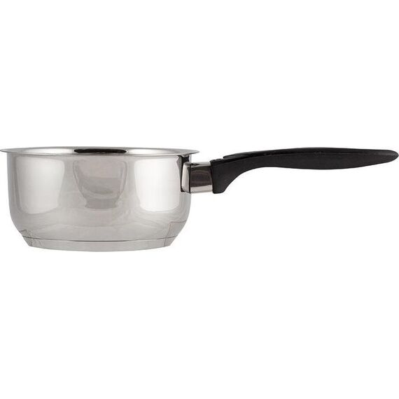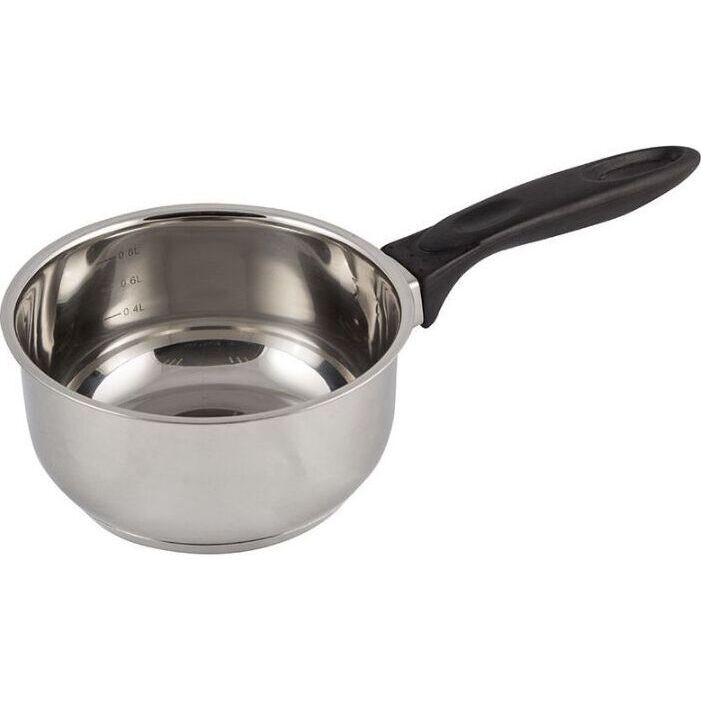 Ковш из нержавеющей стали с бакелитовой ручкой капсулированное дно, 3-слойное 201 нерж сталь +1 мм алюминий + 201 нерж сталь база зеркальная полировка снаружи и внутри, отметки литража. объем 1000 мл, диаметр — 14 см Толщина стенок — 0,4 мм Высота стенок — 7,5 см Толщина дна — 1,9 мм тм Mallony Не подходит для индукции. Метод производства — штамповка/тип крепления ручек точечная сварка. Не рекомендуется мыть в посудомоечной машине. Упаковка: стикер, пакет