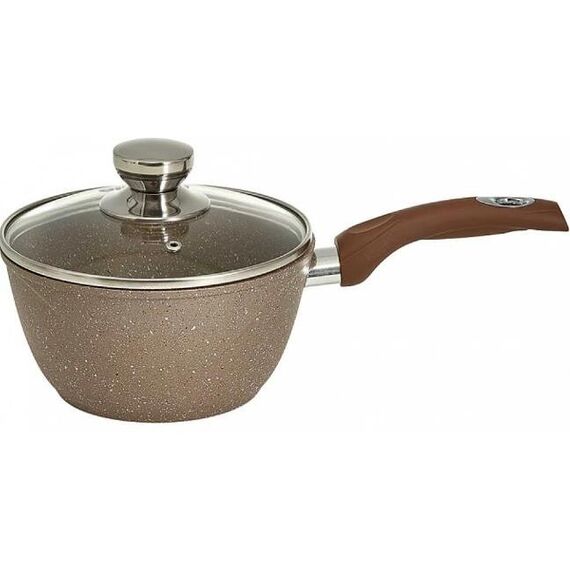 Ковш 1.7л с несъемной ручкой из бакелита и стеклянной крышкой. Антипригарное покрытие Greblon Rough на водной основе без PFOA. Серия "Гранит brown". Подходит для всех типов плит, кроме индукционных. Можно использовать в посудомоечной машине. Ресурс более 15 000 циклов, толщина покрытия до 55 мкр. Толщина дна 5,5-6мм., толщина стенок 3,6-4мм. Покрытие Greblon Rough позволяет готовить с минимальным количеством масла, сохраняя вкусовые и полезные свойства продуктов. Литой толстостенный корпус не подвержен деформации, а утолщенное дно равномерно распределяет тепло по всей поверхности.