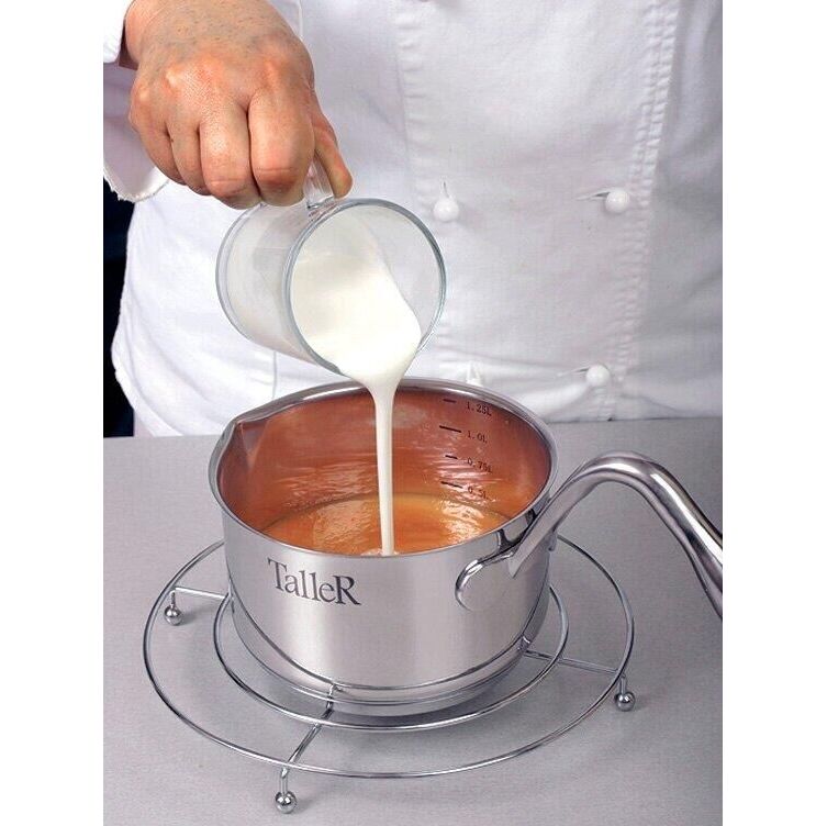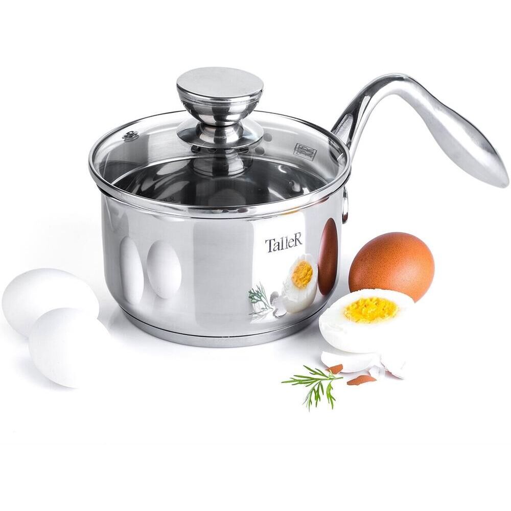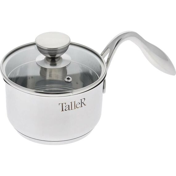 Ковш с крышкой "Энфилд", 14х8.5 см (1.2л) Толщина стенки - 0,7 мм, толщина дна - 5,2 мм, внешний диаметр дна - 12,1 см. Полировка внешння - зеркальная, внутренняя - зеркальная. Комбинированная крышка из нержавеющей стали и жаропрочного стекла. Ручка из