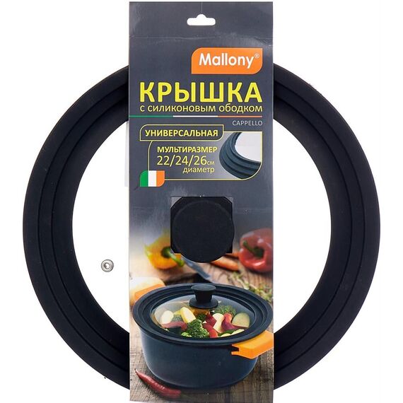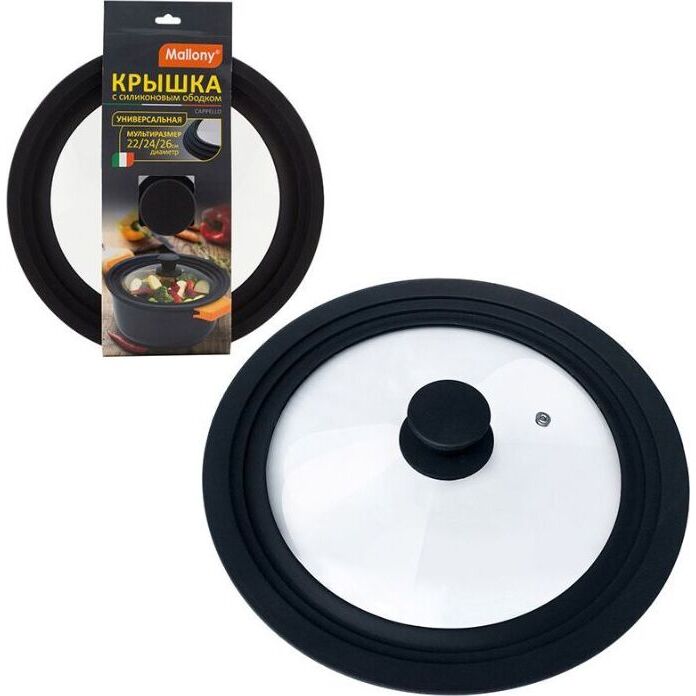 Крышка MALLONY CAPPELLO, мультиразмер: 22/24/26 см, из закал стекла с сил ободком (003876)