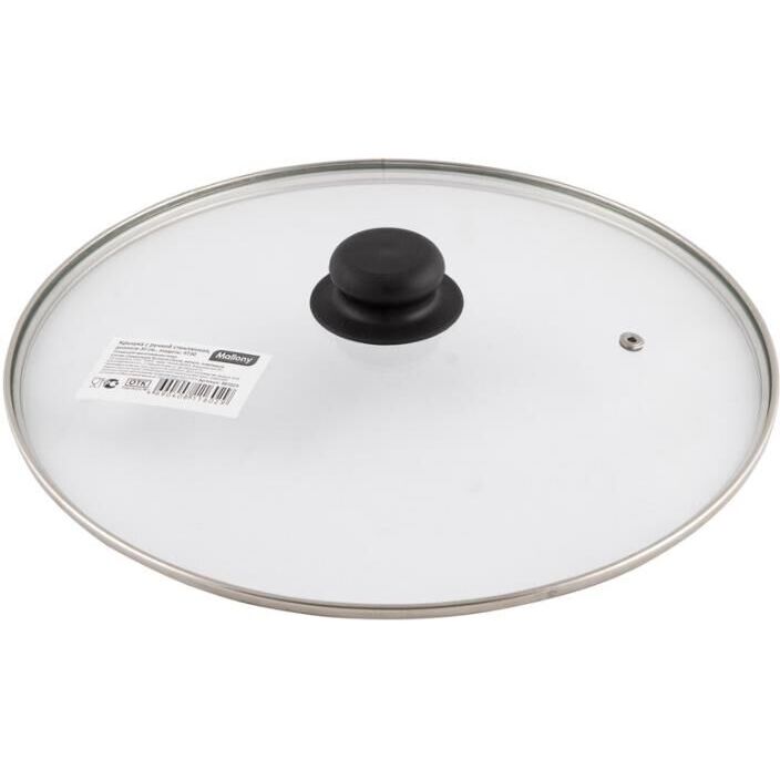 Крышка MALLONY Крышка с ручкой стеклянная 30см., с метал/обод, паровыпуск, низ. (987024)