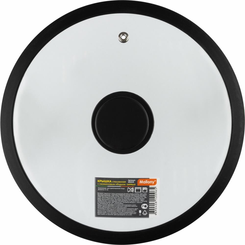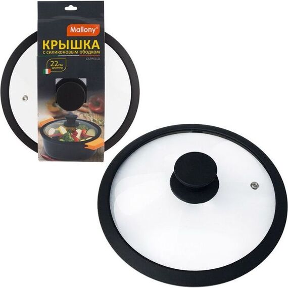Крышка MALLONY Крышка стеклянная с силиконовым ободком CAPPELLO, 22 см диа, сил ручка (003543)