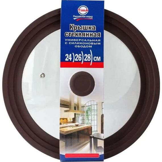 Крышка TIMA Крышка стеклян. с силикон/обод на 3 размера 24-26-28 коричневая 48242628BR