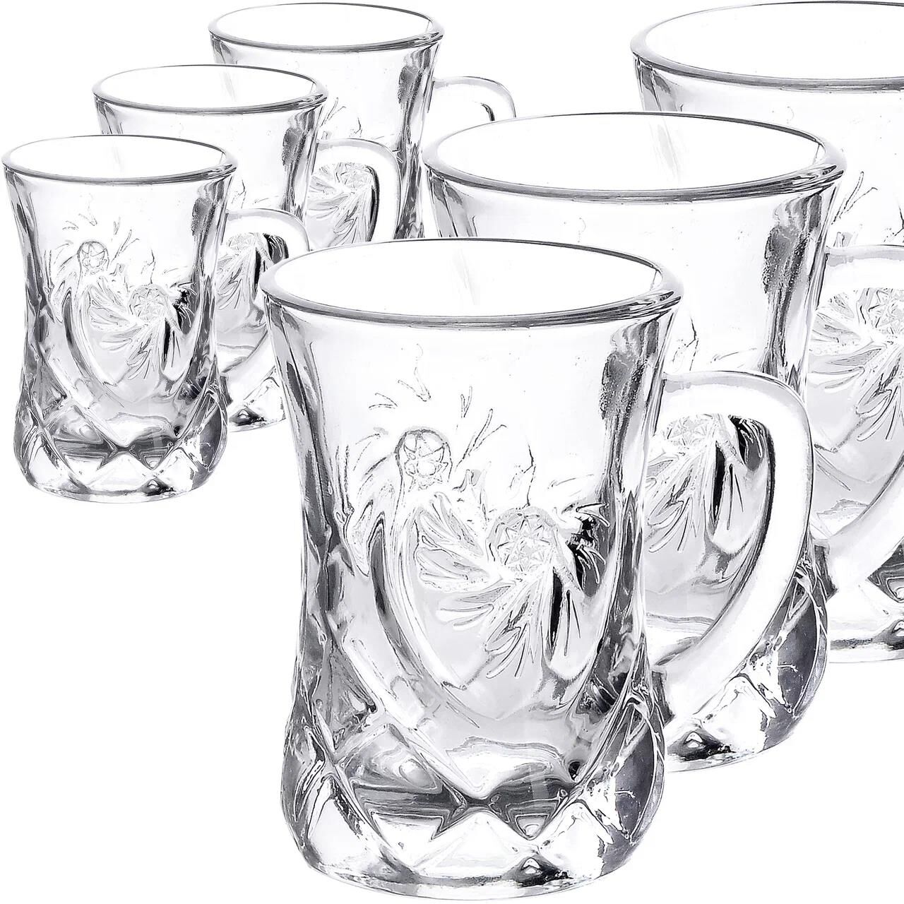 Набор из 6-ти кружек-армуд выполнен из высококачественного стекла. Стильный набор предназначен для подачи горячих и холодных напитков. Оригинальный дизайн, уникальная форма, прозрачные стенки придают набору невероятную эстетичность. Чашки подойдут для повседневного использования как в домашних условиях, так и в местах общественного питания (кафе, бары, рестораны). Посуда обладает непористой поверхностью, не впитывает запахи, легко моется.