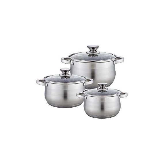 Набор посуды WEBBER BE-615/6 Набор посуды из нерж.стали 6 пр. 2,9л, 5,1л, 6,6л со стеклянными крышками