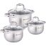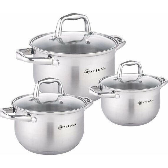 Набор посуды ZEIDAN Z-50650 6 предметов, Набор кастрюль, 6 предм. (3 КАСТРЮЛИ С КРЫШКАМИ 2.1 Л (d16 см ), 3.0 Л (d18 см ), 4.0 Л (d20 см ), нержавеющая сталь, 5-ти СТЕПОВОЕ КАПСУЛИРОВАННОЕ ИНДУКЦИОННОЕ ДНО, крышки - стекло, комбинированная полировка снаружи, глянцевая полировка внутри. Подарочная упаковка.