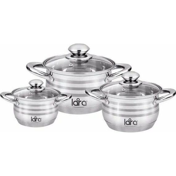 LR02-100 Набор посуды LARA Sonata, 6 пр., (кастр. 2.1л + 3.9л + 6.5л) стеклян. крышки