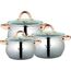Набор посуды, 6 предм. (3 КАСТРЮЛИ С КРЫШКАМИ: 2.1 Л (16 см, h=10,5 см ), 3.0 Л (18 см, h=11,5 см ), 4.0 Л (20 см, h=12,5 см ), нержавеющая сталь, ЗЕРКАЛЬНАЯ ПОЛИРОВКА снаружи и внутри, шкала литража, РУЧКИ «ПОД ЗОЛОТО», крышки - стекло, 5-ти СЛОЙНОЕ КАПСУЛИРОВАННОЕ ДНО, ПОДАРОЧНАЯ КОРОБКА С РУЧКОЙ.