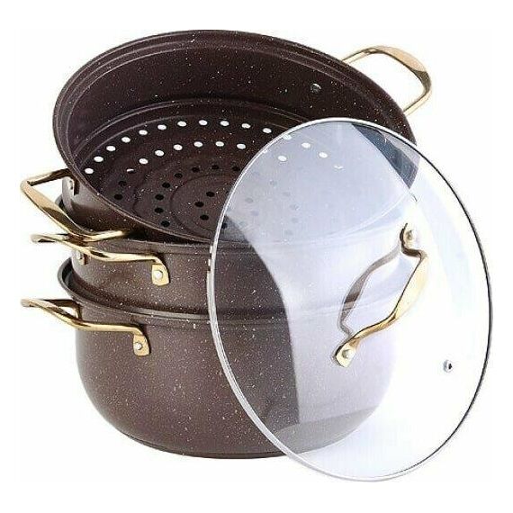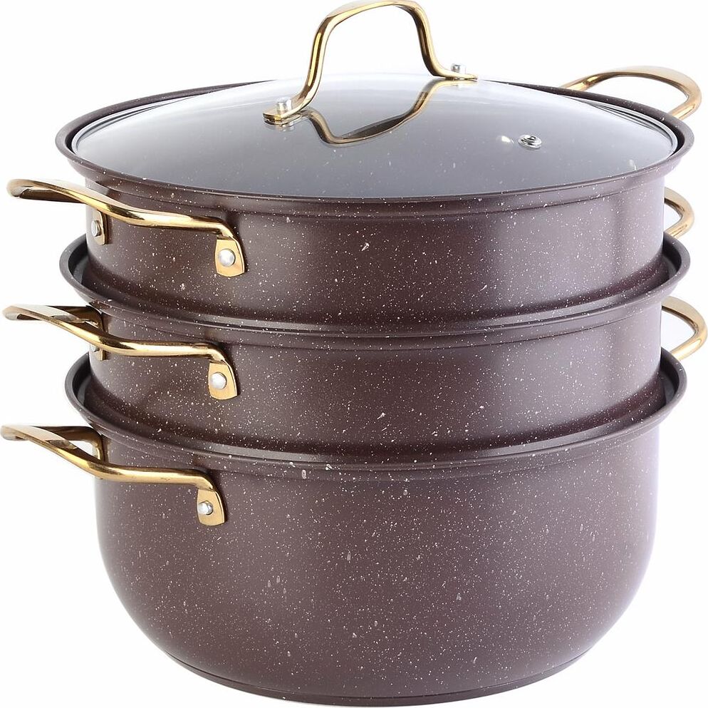 Мантоварка 4 пр МВ (x6). Материал: нержавеющая сталь. Диаметр: 32 см. Объём: 7,6 л. Крышка: стекло, нжс. Ручки: нжс. Высота яруса:8,5см. Цвет: коричневый мрамор. Размер упаковки: 34,8х32,6х21,2 см. Вес: 2,92 кг. Страна производитель: Китай.