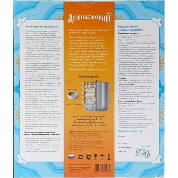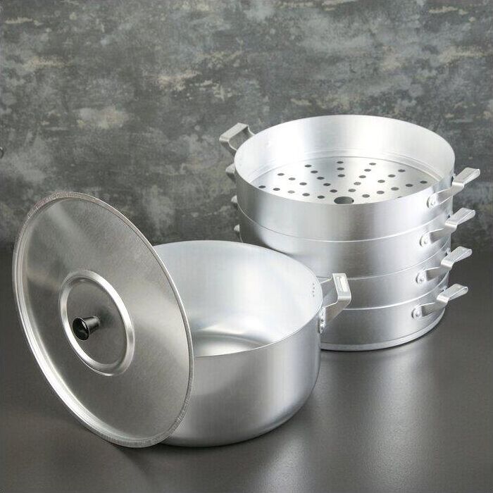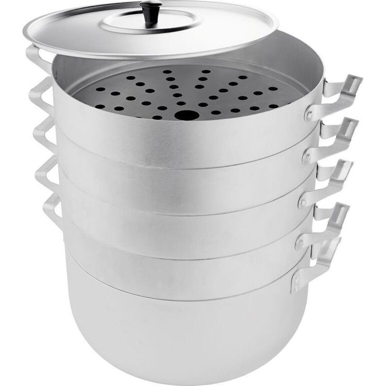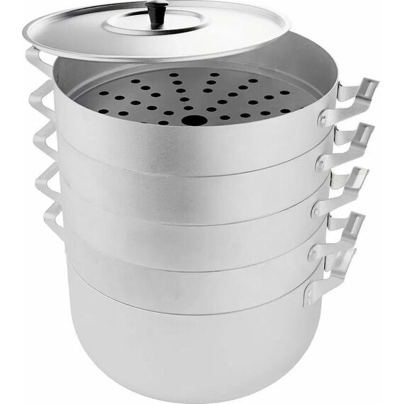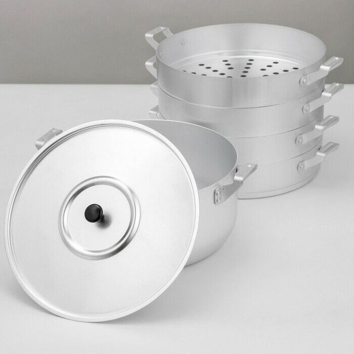 Манты-казан 6,0л алюминиевый отличается надежным корпусом, который подходит для использования на плитах любого типа, кроме индукционного. Удобная, практичная и долговечная посуда для приготовления блюд на пару из штампованного алюминия. Конструкция мантоварки состоит из корпуса и комплекта сеток для размещения продуктов на разных уровнях. Отверстия в дне сеток позволяют распределить пар по всему объему мантоварки, что позволит приготовить еду равномерно и одновременно. Количество сеток можно регулировать, добавлять или уменьшать. Подходит для газовой, галогенной, стеклокерамической и электрической плиты. Диаметр верха 26 см Диаметр дна 26 см Высота стенок 33 см Вес 2.329 кг