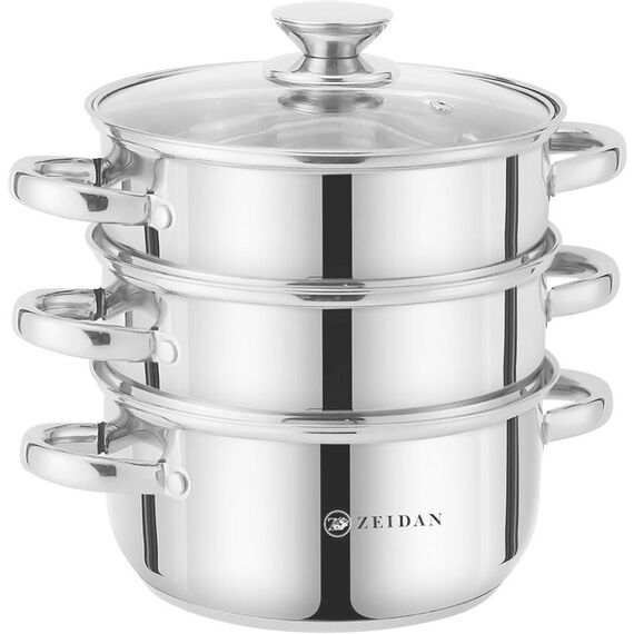 Пароварка ZEIDAN Z-501107 d18 см 2,5 л, Пароварка d18см - 2,5л, нержавеющая сталь, 3-х слойное капсулированное индукционное дно, 3 яруса. Подарочная упаковка.