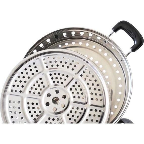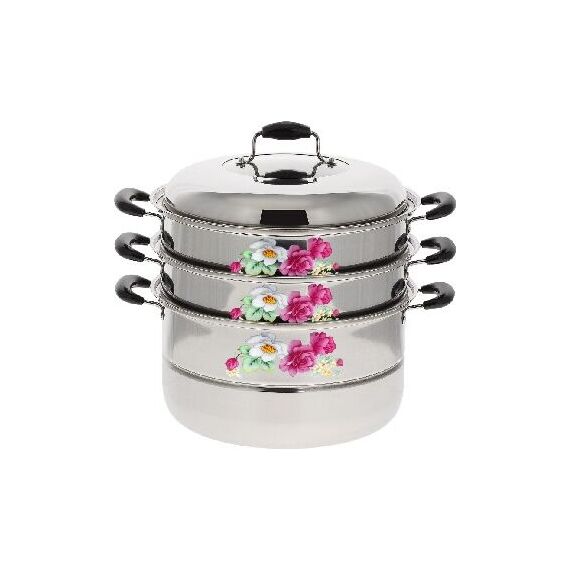 МАНТОВАРКА ТРЕХУРОВНЕВАЯ, диаметр 28 см. Высокачественная нержавеющая сталь 18/10. Зеркальная полировка. Ручки не нагреваются. Прозрачная крышка позволяет следить за процессом приготовления. Сохраняет все полезные свойства продуктов.