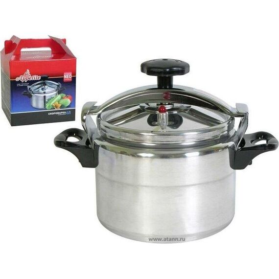 Объем, л./размер, см: 6 л Материал: алюминий Толщина дна: 2 Толщина стенок: 2 Источник тепла: Газовая и электрическая плиты Тип упаковки: цветная коробка Крышка: герметичная