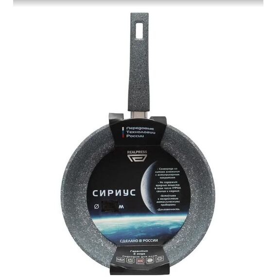 Сковорода REALPRESS 26 см серии СИРИУС с несъемной ручкой изготовлена в России из литого алюминия с многослойным антипригарным покрытием. Антипригарное покрытие наносится методом распыления под высоким давлением, что обеспечивает его жесткое сцепление с поверхностью металла. Это является гарантией длительного срока службы сковороды. Покрытие не содержит вредных веществ, в том числе ПФОА, свинца и кадмия, состоит из натуральных компонентов, не выделяет при эксплуатации посторонних веществ, устойчиво к непреднамеренному воздействию металлическими приборами. Сковорода имеет толстые стенки (около 3,5 мм) и утолщенное дно (около 6,5 мм). Сковороды RealPress идеально подходят для приготовления любых видов блюд: мясо, овощи, омлеты, блины, оладьи, гарниры, плов, в ней можно бережно тушить и готовить полезную и здоровую еду практически без использования масла! Благодаря равномерному нагреву и распределению тепла при их использовании можно не пережаривать пищу. Сковороды можно использовать на газовых, электрических, с