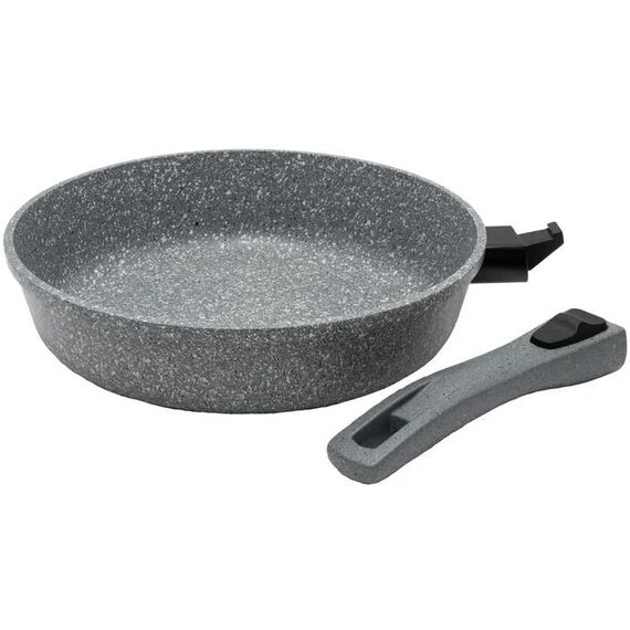 Сковорода REALPRESS 28 см серии СИРИУС со съемной ручкой изготовлена в России из литого алюминия с многослойным антипригарным покрытием. Антипригарное покрытие наносится методом распыления под высоким давлением, что обеспечивает его жесткое сцепление с поверхностью металла. Это является гарантией длительного срока службы сковороды. Покрытие не содержит вредных веществ, в том числе ПФОА, свинца и кадмия, состоит из натуральных компонентов, не выделяет при эксплуатации посторонних веществ, устойчиво к непреднамеренному воздействию металлическими приборами. Сковорода имеет толстые стенки (около 3,5 мм) и утолщенное дно (около 6,5 мм). Сковороды RealPress идеально подходят для приготовления любых видов блюд: мясо, овощи, омлеты, блины, оладьи, гарниры, плов, в ней можно бережно тушить и готовить полезную и здоровую еду практически без использования масла! Благодаря равномерному нагреву и распределению тепла при их использовании можно не пережаривать пищу. Сковороды можно использовать на газовых, электрических, ст