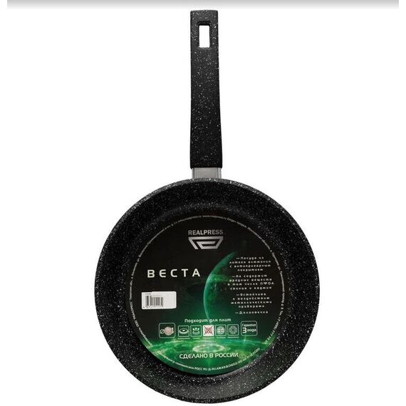 Сковорода REALPRESS 22 см серии ВЕСТА с несъемной ручкой изготовлена в России из литого алюминия с многослойным антипригарным покрытием. Антипригарное покрытие наносится методом распыления под высоким давлением, что обеспечивает его жесткое сцепление с поверхностью металла. Это является гарантией длительного срока службы сковороды. Покрытие не содержит вредных веществ, в том числе ПФОА, свинца и кадмия, состоит из натуральных компонентов, не выделяет при эксплуатации посторонних веществ, устойчиво к непреднамеренному воздействию металлическими приборами. Сковорода имеет толстые стенки (около 3,5 мм) и утолщенное дно (около 6,5 мм). Сковороды RealPress идеально подходят для приготовления любых видов блюд: мясо, овощи, омлеты, блины, оладьи, гарниры, плов, в ней можно бережно тушить и готовить полезную и здоровую еду практически без использования масла! Благодаря равномерному нагреву и распределению тепла при их использовании можно не пережаривать пищу. Сковороды можно использовать на газовых, электрических, ст
