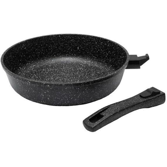 Сковорода REALPRESS 24 см серии ВЕСТА со съемной ручкой изготовлена в России из литого алюминия с многослойным антипригарным покрытием. Антипригарное покрытие наносится методом распыления под высоким давлением, что обеспечивает его жесткое сцепление с поверхностью металла. Это является гарантией длительного срока службы сковороды. Покрытие не содержит вредных веществ, в том числе ПФОА, свинца и кадмия, состоит из натуральных компонентов, не выделяет при эксплуатации посторонних веществ, устойчиво к непреднамеренному воздействию металлическими приборами. Сковорода имеет толстые стенки (около 3,5 мм) и утолщенное дно (около 6,5 мм). Сковороды RealPress идеально подходят для приготовления любых видов блюд: мясо, овощи, омлеты, блины, оладьи, гарниры, плов, в ней можно бережно тушить и готовить полезную и здоровую еду практически без использования масла! Благодаря равномерному нагреву и распределению тепла при их использовании можно не пережаривать пищу. Сковороды можно использовать на газовых, электрических, сте