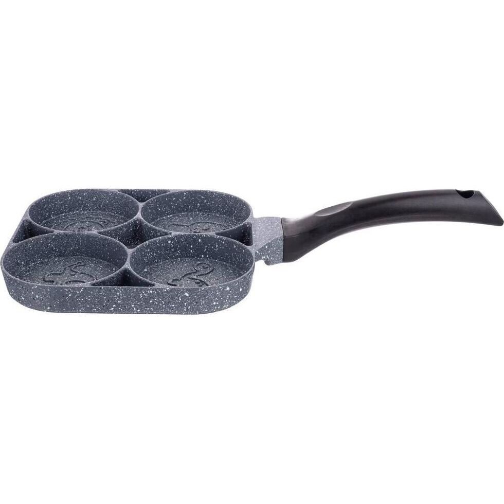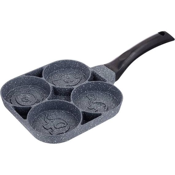 Сковороды выполнены из литого алюминия. Такая посуда отличается высокой теплопроводностью и устойчивостью к деформациям. Необычный дизайн сковороды позволит приготовить интересные и веселые оладушки и омлеты. Особенности: - Сковорода расчитана на 4 порции - Благодаря антипригарному покрытию Вам понадобится минимальное количество масла для приготовления. В посуде с антипригарным покрытием блюда не прилипают, а сковороду легко мыть. - Не нагревающаяся пластиковая ручка - Не подходят для индукционных плит - Рекомендована ручная мойка - Толщина стенок 2,0мм, толщина дна 2,5мм Диаметр, см: 18.5